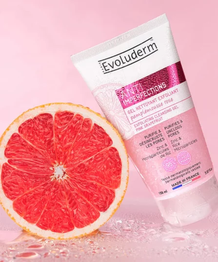 Formulé à 93% d’origine naturelle et végan, ce Gel Nettoyant Exfoliant aide les peaux à imperfections à retrouver un grain de peau affiné. Grâce à sa formule enrichie en extrait de Pamplemousse Rose et en Zinc, il nettoie et purifie profondément la peau, régule l’apparition d’imperfections et élimine l’excès de sébum. Les Microparticules de Riz présentes dans sa formule désobstruent les pores pour rendre la peau plus nette et plus fraîche dès la première utilisation. Le Zinc, véritable allié de la peau, agit lui aussi sur l’excès de sébum et aide les pores à se libérer des impuretés.