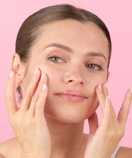 2- Massez délicatement du bas vers le haut pendant 3 minutes en évitant le contour des yeux.